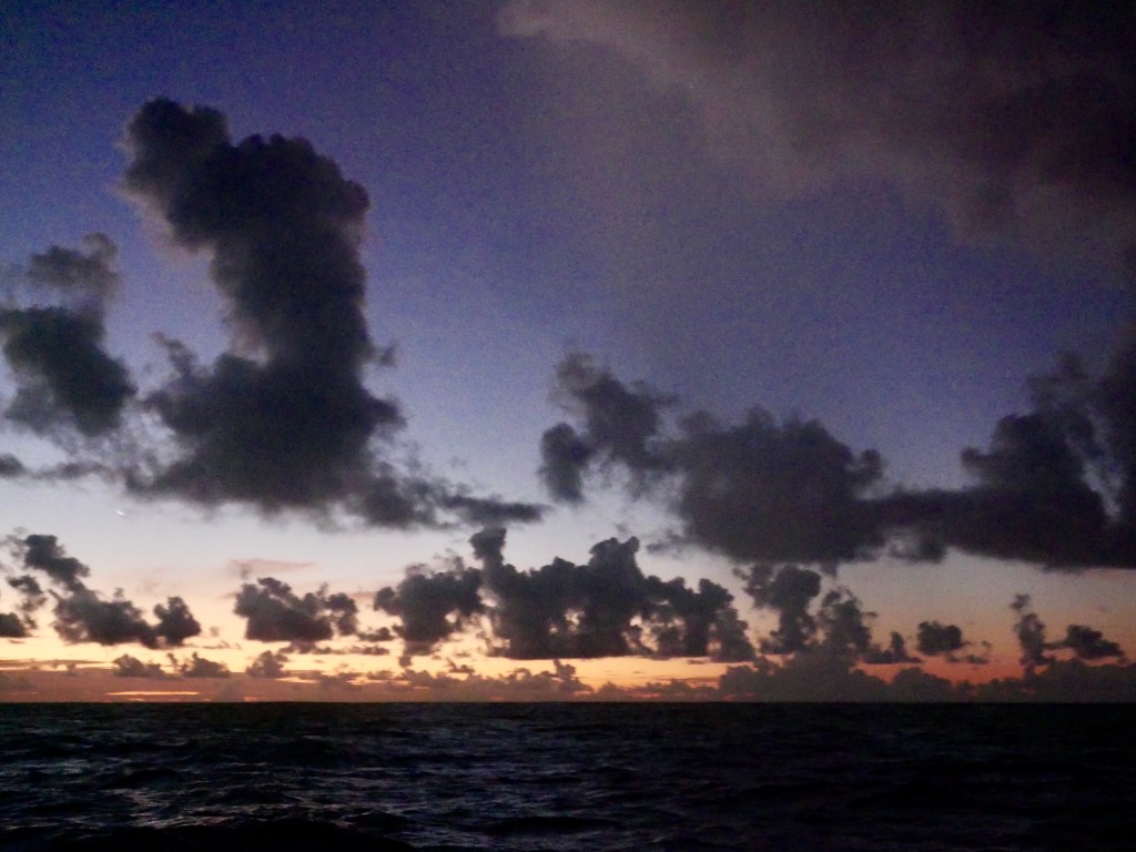 De plus en plus fort, nous prenons de la gite et de la vitesse. J’enlève mes habits pour les garder au sec, prêt à affronter nu en pleine nuit l’épreuve de la pluie.